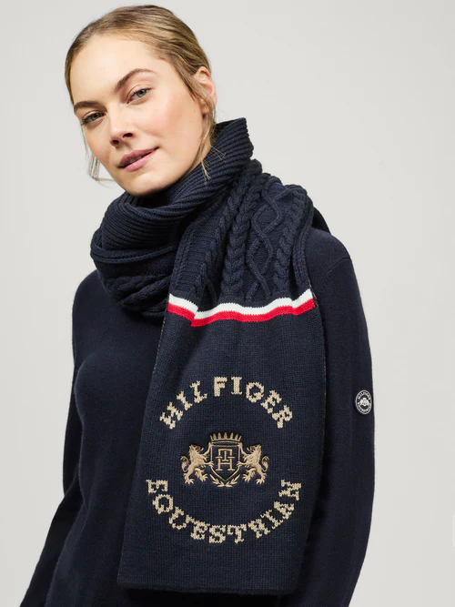 🤍 L’écharpe Hyde Ciel du Désert séduit par sa maille douce, ses rayures Tommy Hilfiger emblématiques et son grand logo TH. Un accessoire chaud et stylé, parfait pour affronter l’hiver avec élégance. 👉 Retrouvez tous nos accessoires cavaliers pour compléter votre tenue.
