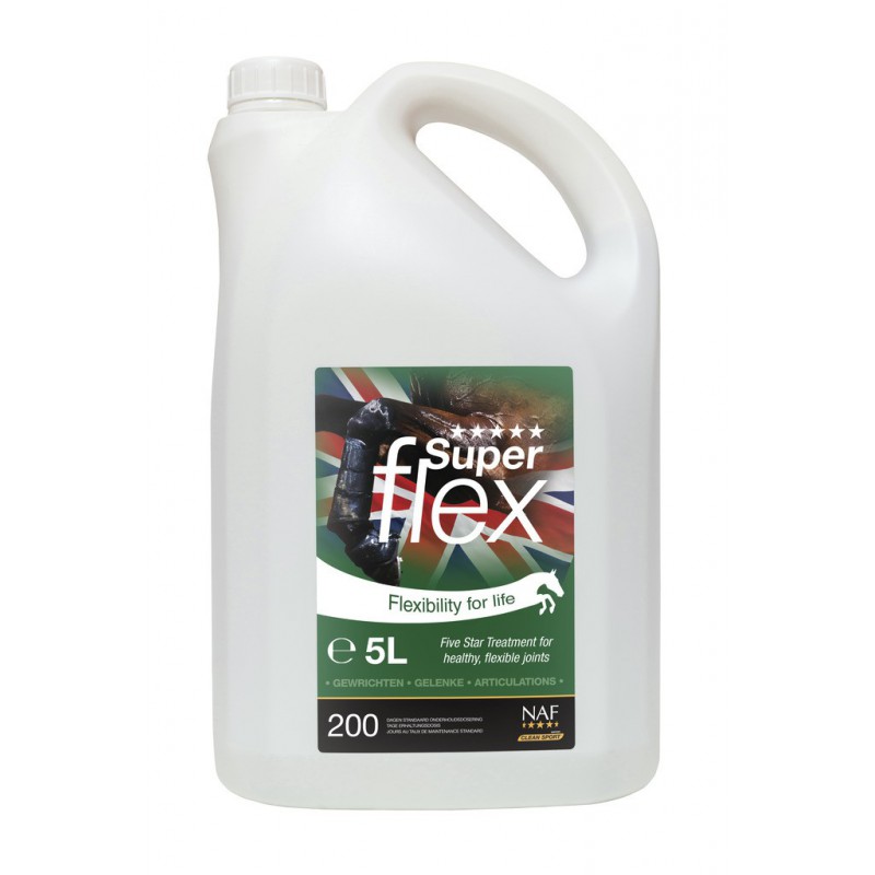 Les articulations des chevaux doivent faire face à des forces extrêmes et s’est souvent le cartilage qui est la première partie à montrer des signes d’usure. Une dilution du liquide synovial (liquide articulaire) et des perturbations dans la couche de cartilage de protection commencent le processus de détérioration. Souvent, les premiers signes sont indétectables, mais peuvent amener au fil du temps à ce que le cheval ne puisse plus travailler efficacement. Superflex est la combinaison adéquate d’un taux d’équilibre calculé scientifiquement entre la Glucosamine et la Chondroïtine déjà absorbée, de MSM de qualité supérieure ajoutée au bénéfices d’une formule anti-oxydante puissante, conçue exclusivement par NAF pour répondre à l’accumulation excessive de toxines autour de l’articulation.
