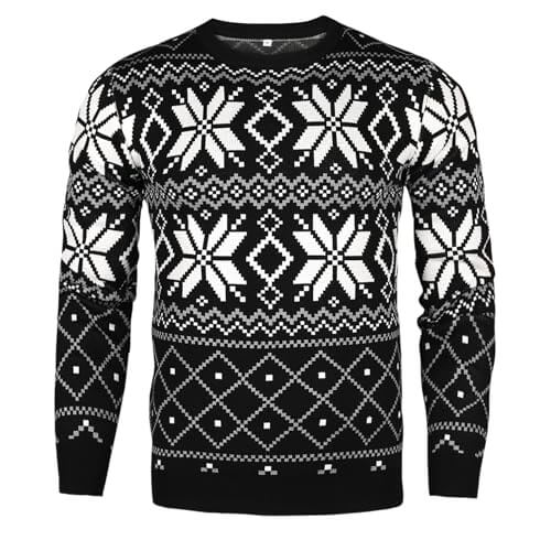 Blizzard de Style – Mélange Flocons et Rennes – Pull de Noël Homme Noir Uniexcosm
