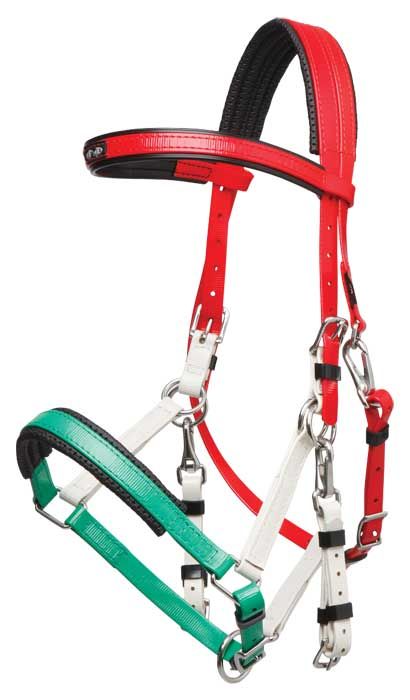 Bridon Licol Marathon Tricolore Zilco (Inox) : Un style plus traditionnel de la gamme Inox avec muserolle et sous gorge ajustable. L’attache est facile pour les montants de bride. Effectivement, les montants de filet, fixés au licol grâce à deux mousquetons, se retirent très rapidement. Ce bridon permet de convertir rapidement la bride en licol et offre beaucoup de réglage pour correspondre parfaitement à la taille de votre cheval.