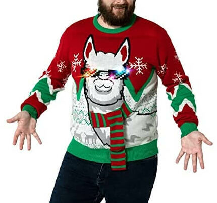 Christmas lama- lama, lunettes de soleil- Pull Noël Homme