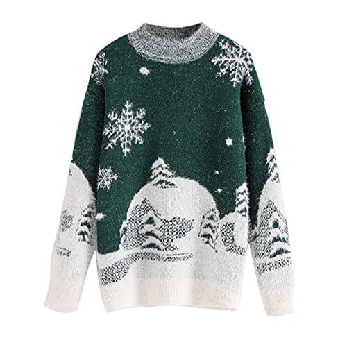 Douce Nuit – Flocons et Sapins – Pull de Noël Vintage