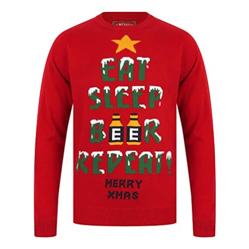 Eat, Sleep, Beer, Repeat – Pull de Noël Rouge pour Homme