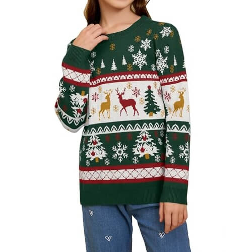 Festivités Rennescibles – Vert, Rouge et Rennes Coquins – Pull de Noël Enfant Unisexe