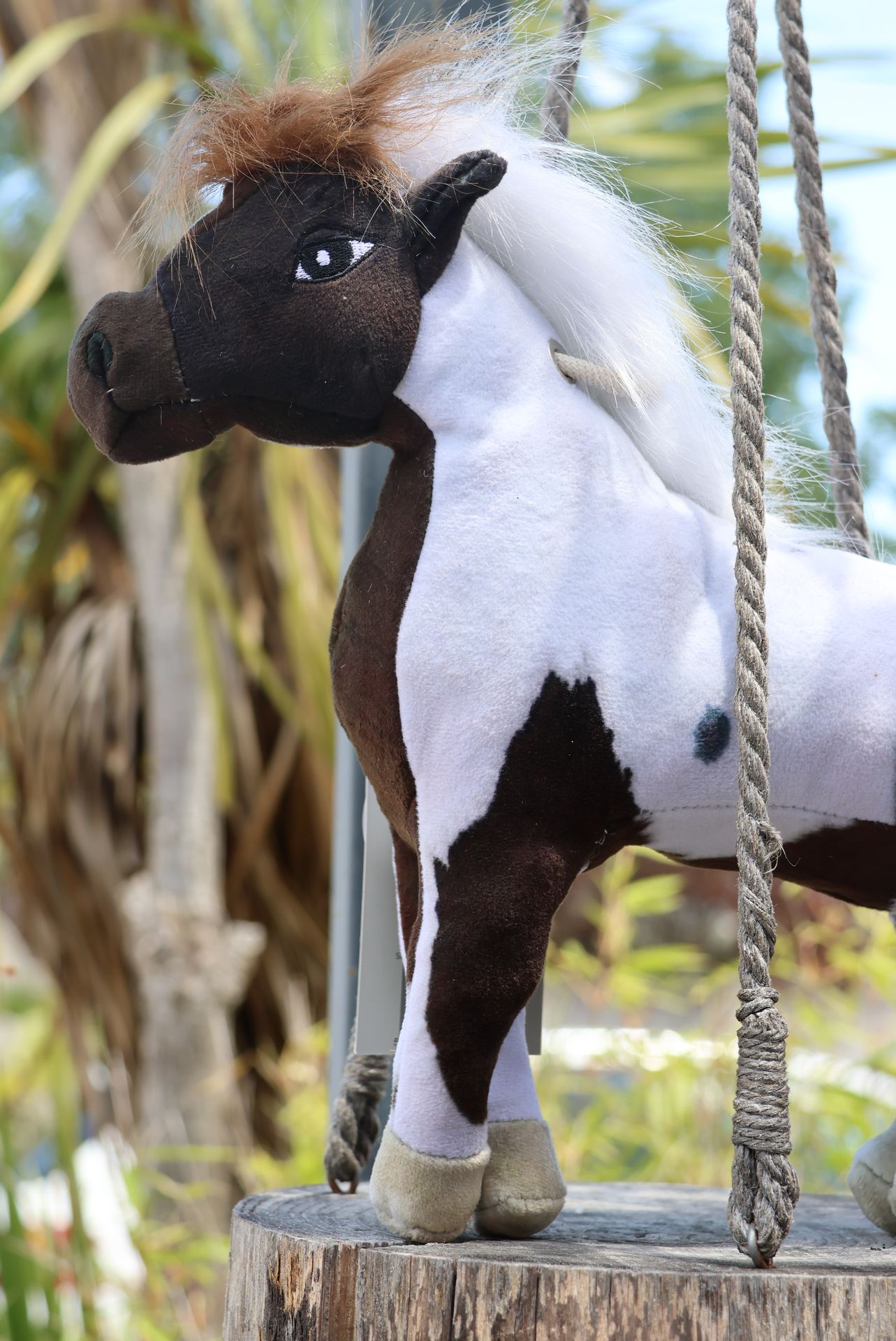 Une petite corde est attachée au garrot pour pouvoir attacher le jouet dans le box. Comme le jouet est vraiment destiné à jouer et à s’amuser, il est possible que votre cheval le déchire. Le jouet sont remplis de jute, ils peuvent donc aussi être écrasés sans perdre leur forme.