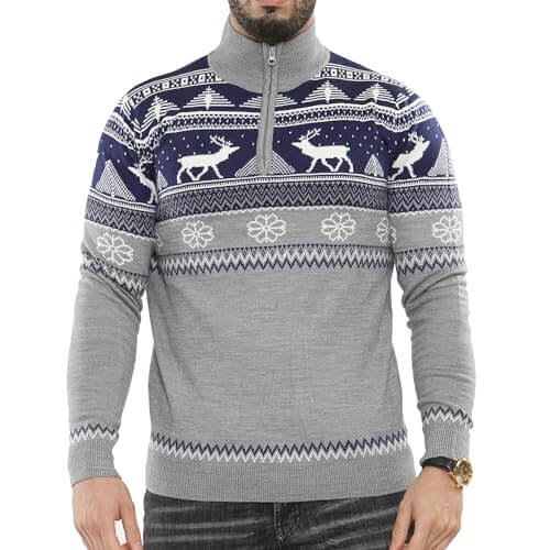 Joyeux Elan Nordique – Bleu Marine avec Fausse Fermeture – Pull de Noël pour Homme