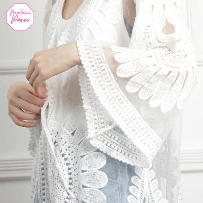 Kimono de plage en dentelle blanche