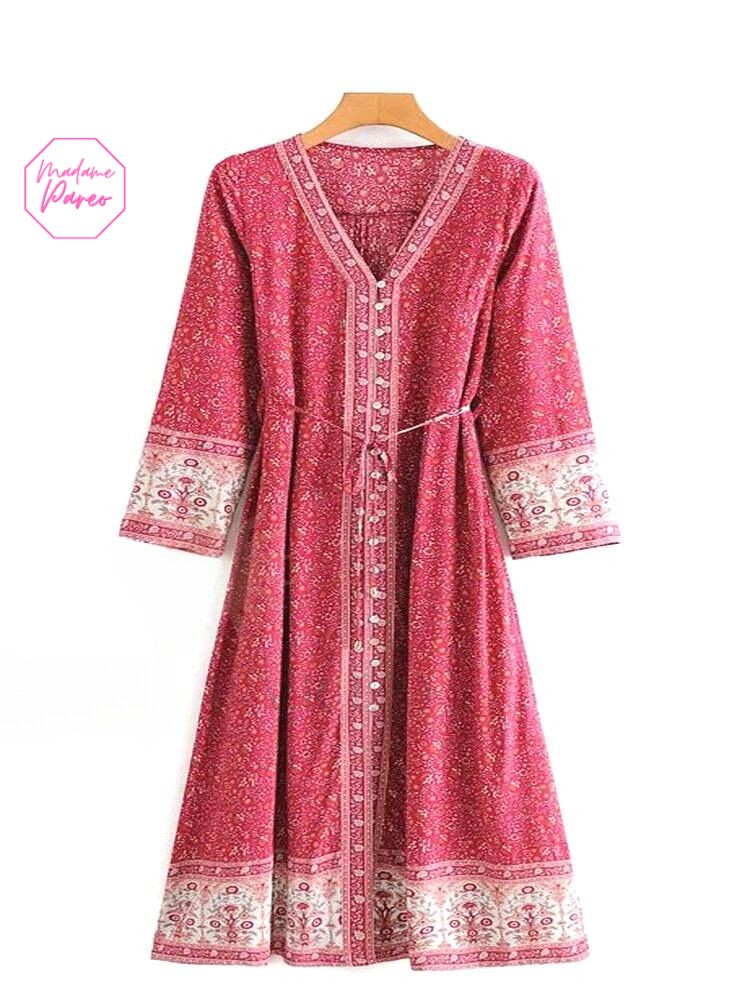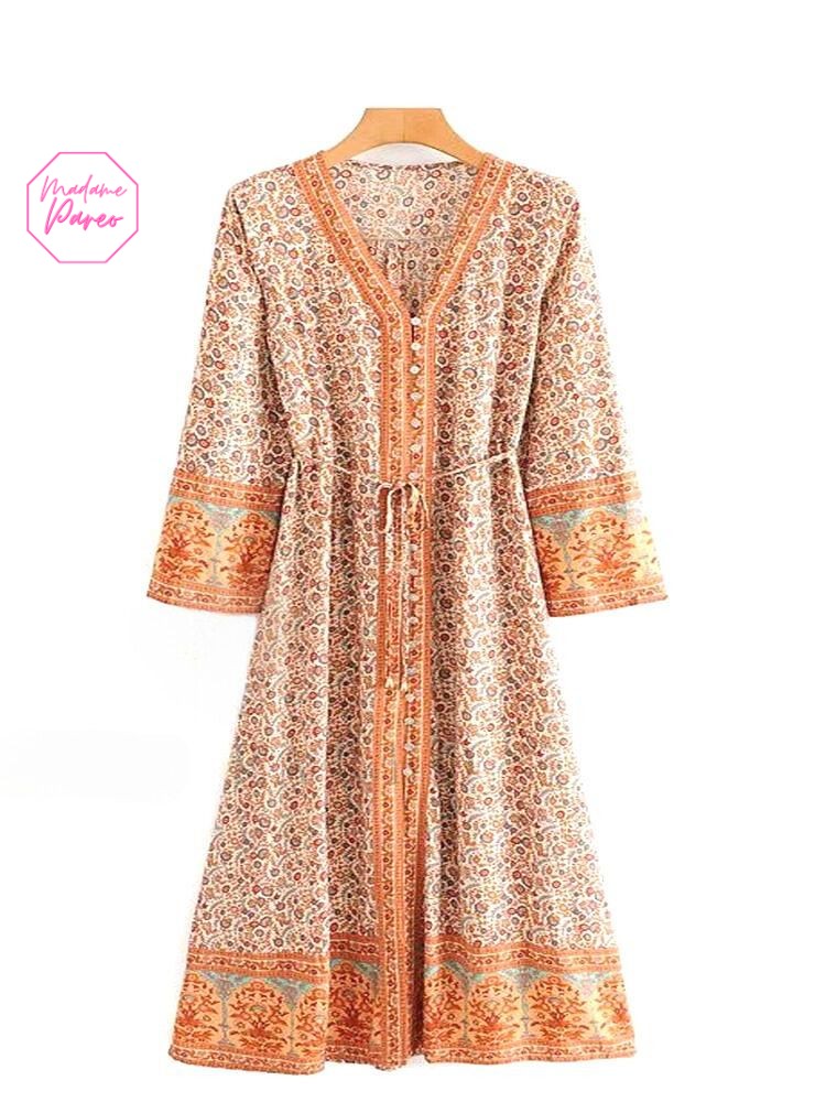 Longue Robe Chemise Bohémienne à Col en V