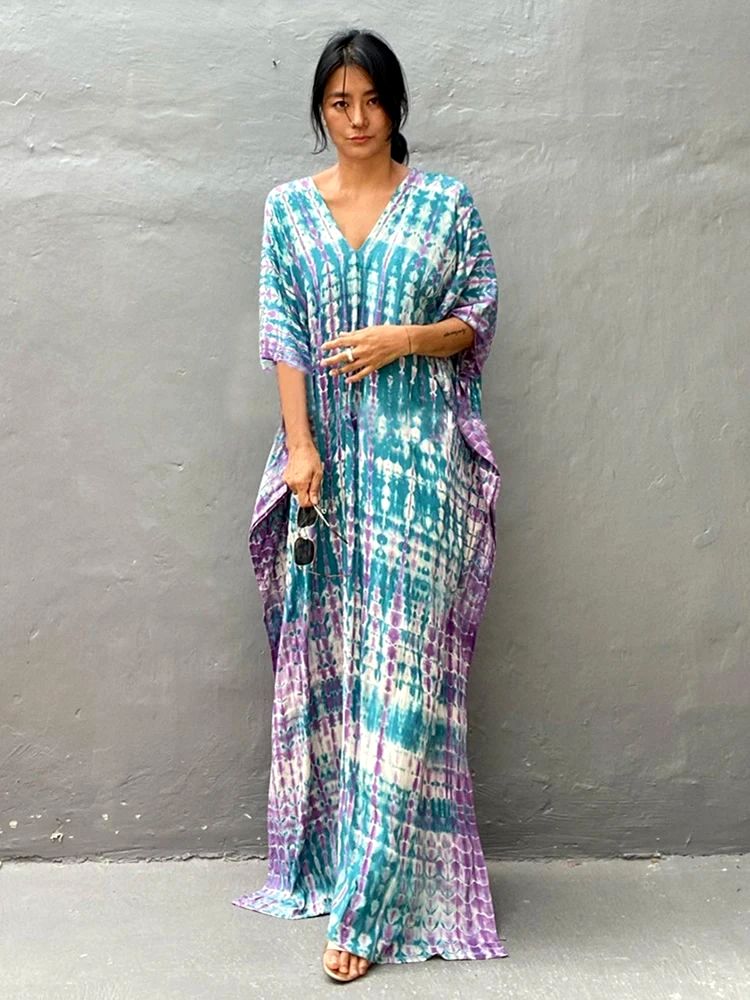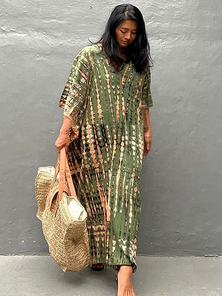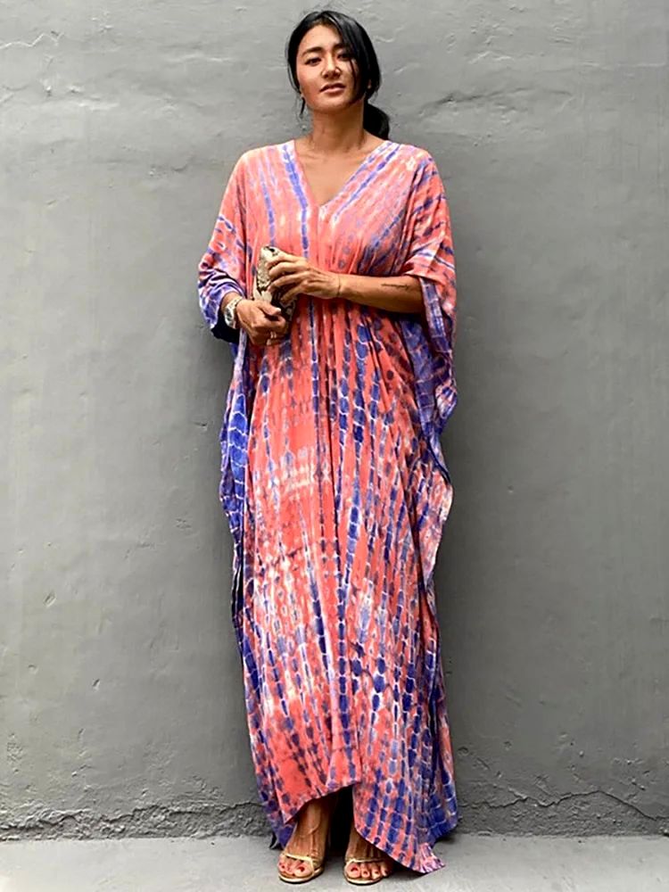 Vivez l’esprit libre et insouciant d’un été avec cette longue robe tie and dye, où le mouvement des flots et la chaleur solaire sont vos compagnons quotidiens.