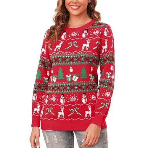 Ce pull est disponible en deux couleurs festives. Elles garantissent de l’assortir précisément avec rien de ce que vous possédez déjà.