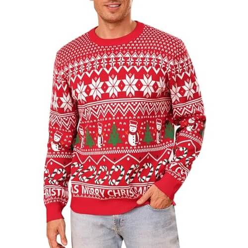 Chaque centimètre carré de ce pull hurle « Noël » plus fort que Mariah Carey un 24 décembre ! Enfiler ce pull, c’est comme se blottir dans une bûche géante. Mais en moins appétissant et beaucoup plus grattant. Il ne manquera pas d’élever la température de n’importe quelle pièce.