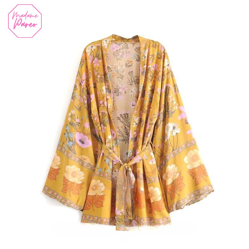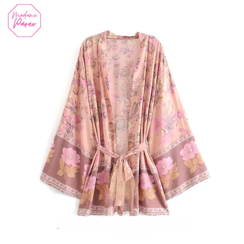 Robe Kimono Courte Manches Chauve-Souris Imprimé Floral