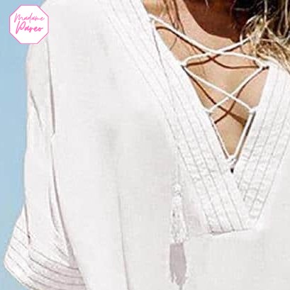 Robe paréo de plage à lacet col en V