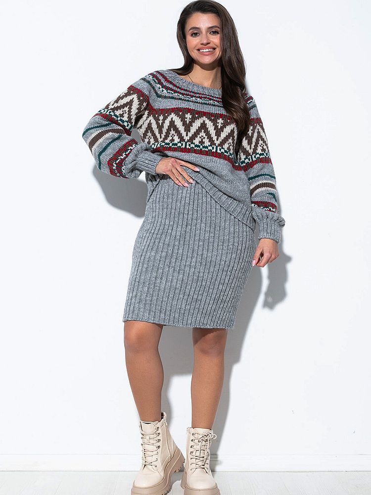 Robe Pull Hiver 2 Pièces Jacquard en Laine