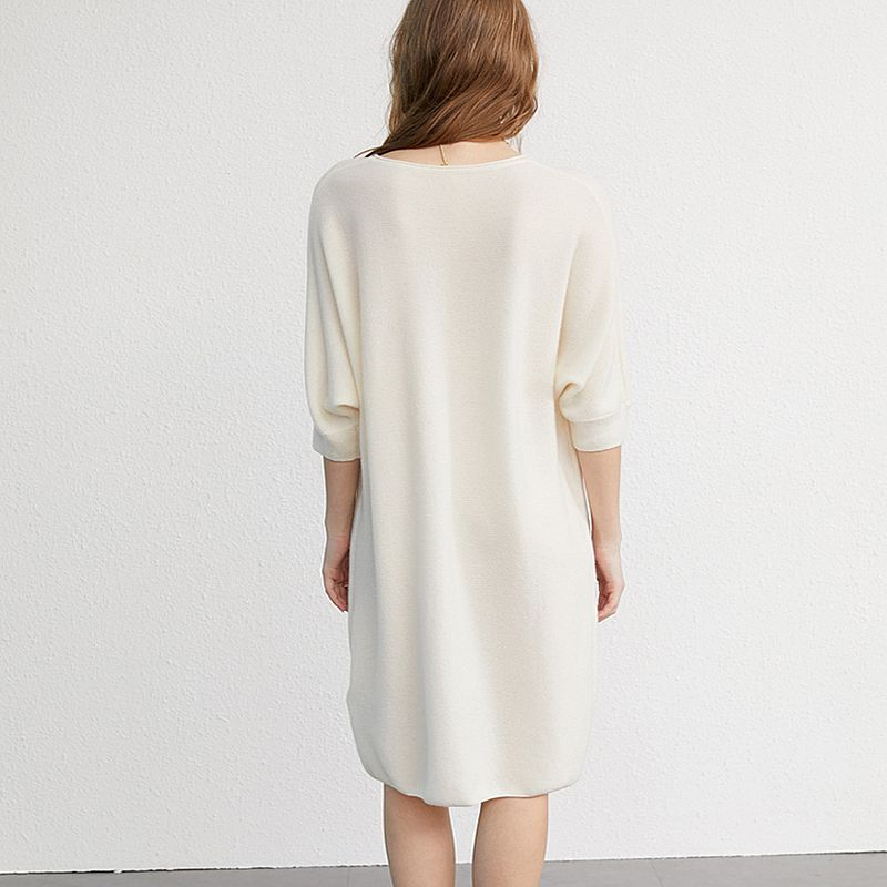 La Robe Pull Semi-Longue en Cachemire Pur se décline en trois couleurs captivantes : beige clair, beige foncé et blanc. Peu importe votre choix, chaque teinte est soigneusement sélectionnée pour rehausser votre garde-robe avec une élégance raffinée.